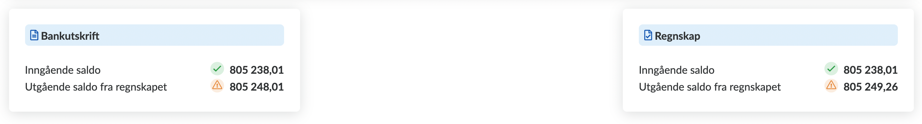 Sjekk her om inngående balanse fra kontoutskriften stemmer med inngående balanse i regnskapet.