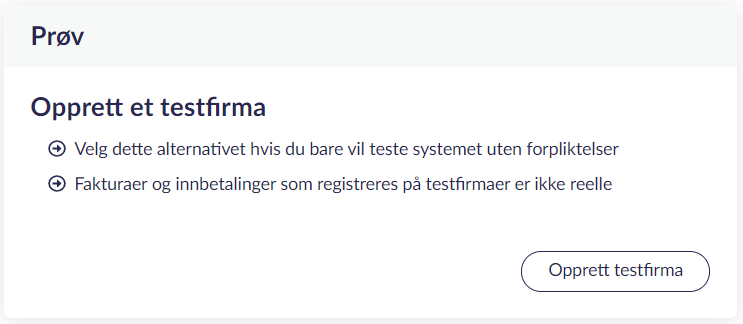Lyst til å teste løsningen før du går i gang på ekte? Opprett et testselskap!