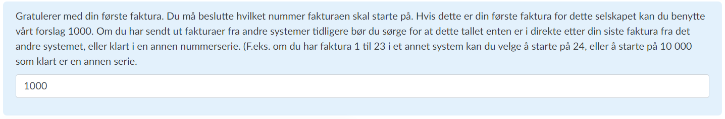 Du kan velge hvilket fakturanummer du starter på første gang du sender en kundefaktura.