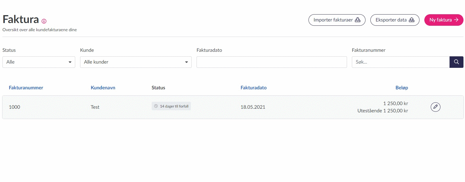 2. Finn fakturaen du ønsker å kreditere > Klikk på redigeringspennen