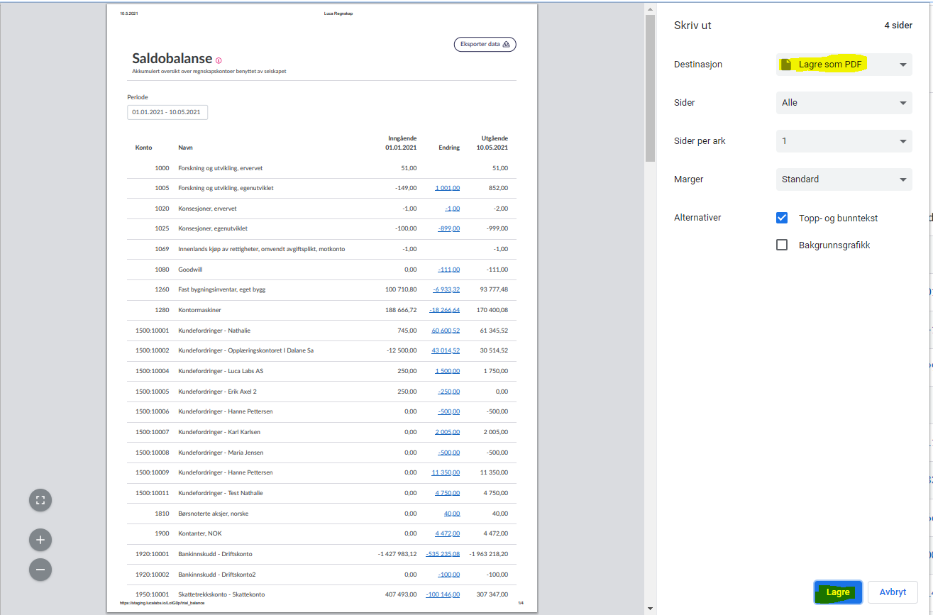 Lagre regnskapsrapporter som PDF