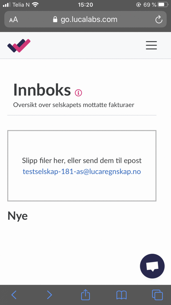 Nedenfor finner du en beskrivelse av hvordan du bruker innboksen via nettleseren på mobilen, til å ta og laste opp bildene.