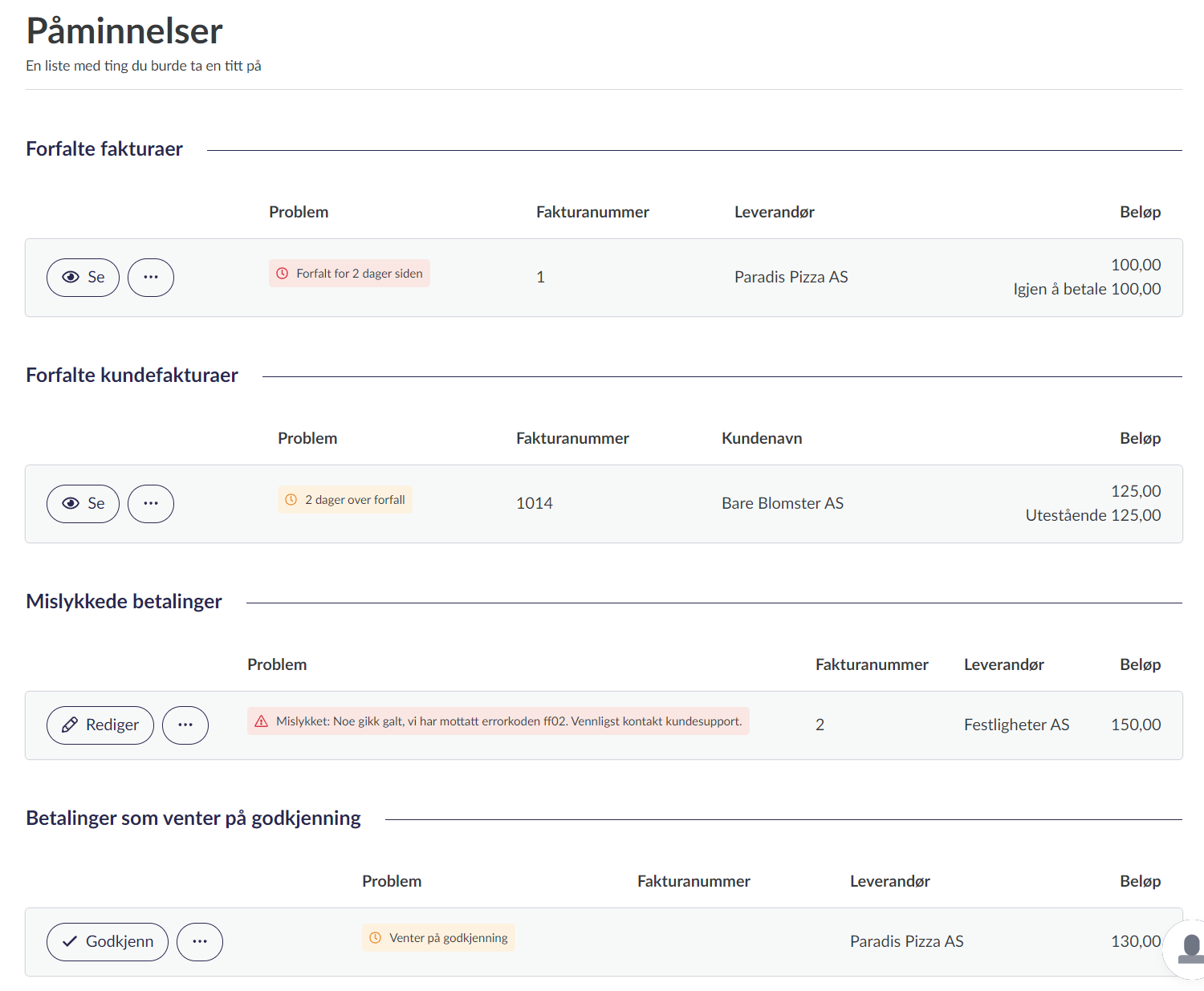 • Forfalte kundefakturaer som du burde gjøre noe med
