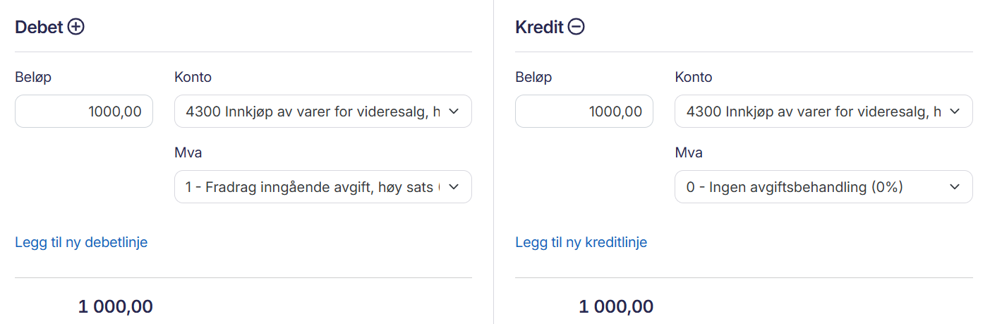 Du vil nå se at det kun er mva-fradraget på kjøpet som har blitt registrert, og kostnaden har blitt redusert.