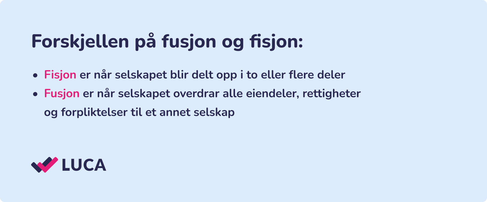 En fusjon som beskrevet her betyr at bedriften du fusjonerte inn i det nye datterselskapet oppløses. Dermed mister du også denne bedriftens organisasjonsnummer. Husk også at datterselskapet overtar alle eiendeler, rettigheter og forpliktelser bedriften hadde.