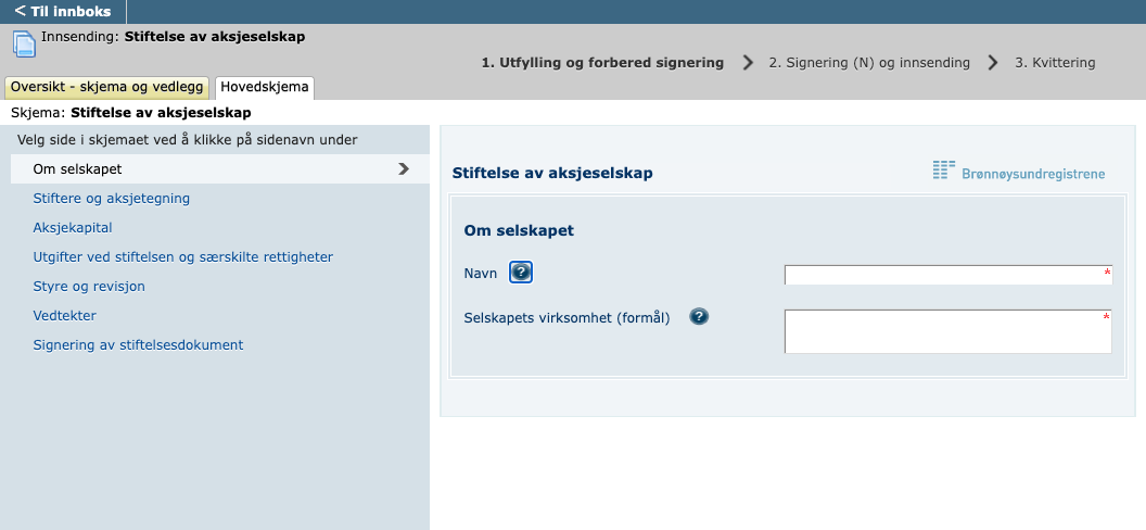 Trinn 3 - Registrere aksjeselskapet i Foretaksregisteret