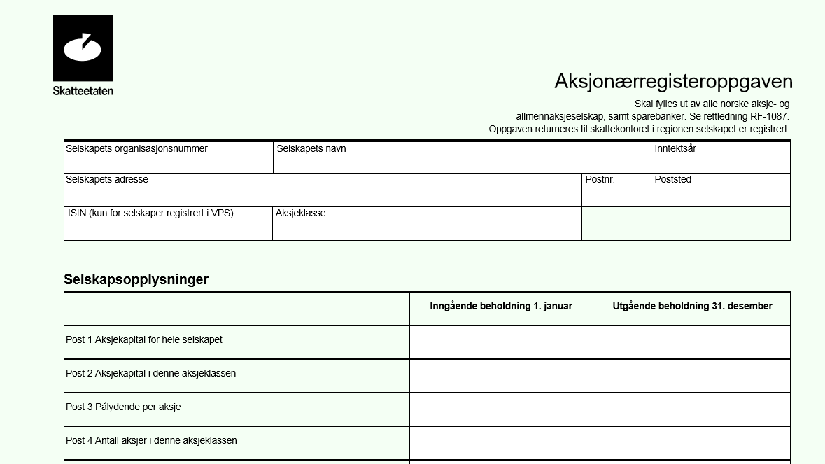 Alle som driver aksjeselskap må levere aksjonærregisteroppgave til Skatteetatens aksjonærregister, det vil si en oversikt over hvem som eier aksjer i selskapet.