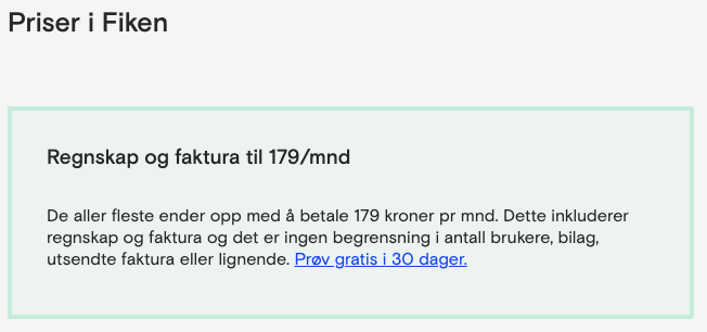 Det er litt enklere å se hva som koster hva i Fiken enn i Conta, og du slipper å tenke på ulike pakkepriser.