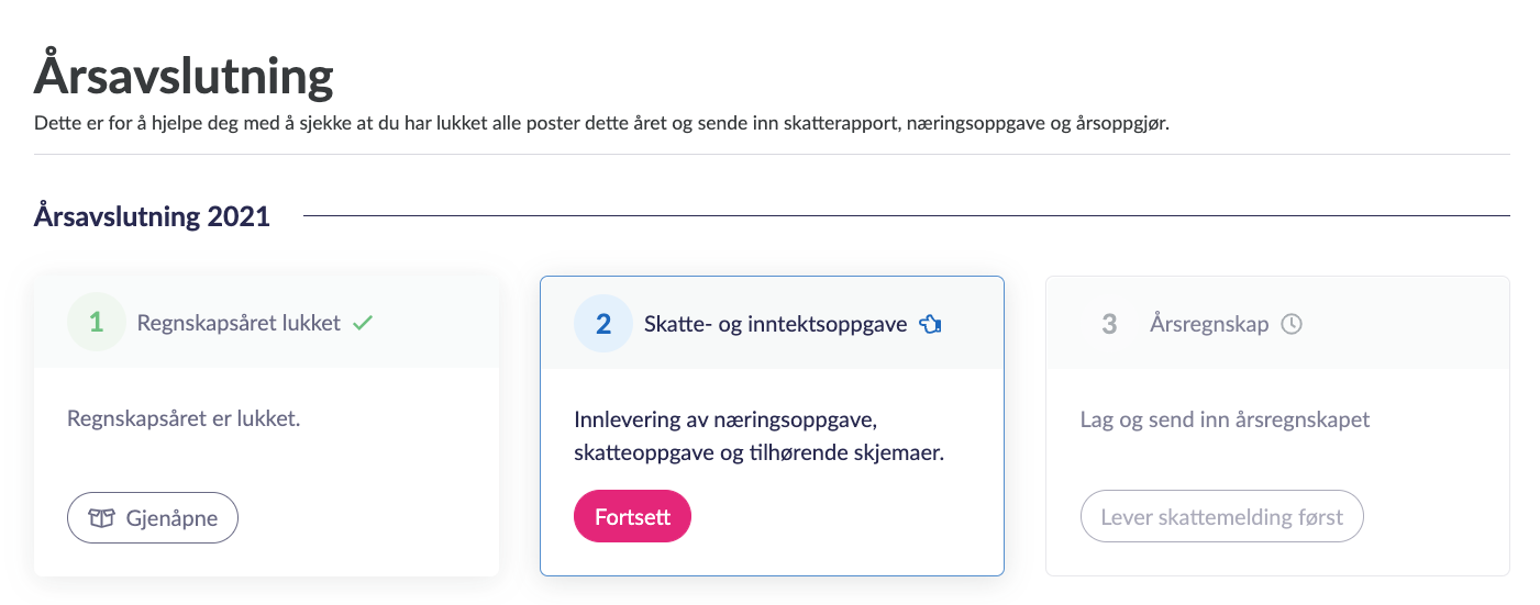 - Klikk på årsavslutning i hovedmenyen.