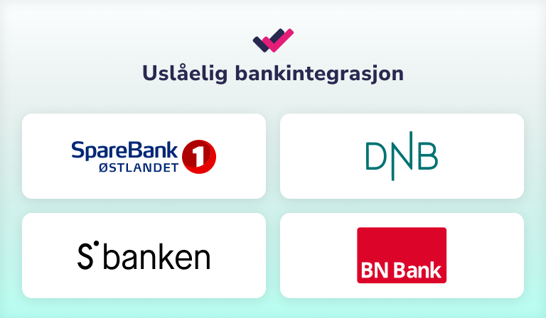 - Bankintegrasjon gjør at du sparer tid og unngår feil. Få alt som skjer på bedriftskontoen automatisk inn i regnskapet.