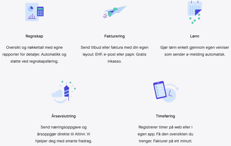 Vær oppmerksom på at flere av de er funksjoner som kan være inkludert i enkelte av konkurrentenes regnskapsprogram, uten at du må kjøpe utvidelser.